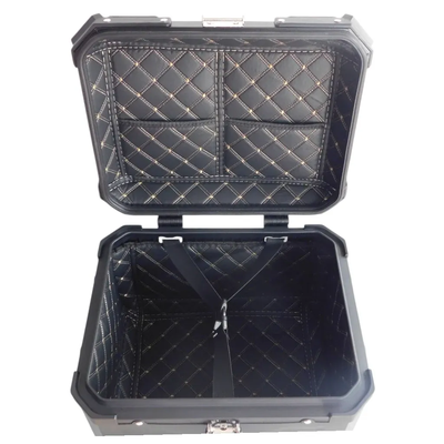 Cajón de aluminio en color negro de 45 Litros, Incluye 2 llaves, forros internos, respaldar, reflectivos y plato de instalación universal.